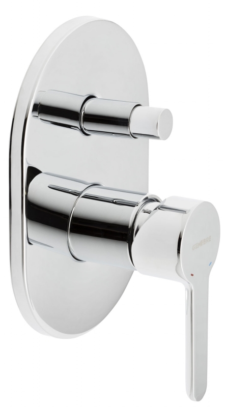 Смеситель встроенный однорычажный для ванны хромированный, с двумя переключателями, настенный монтаж