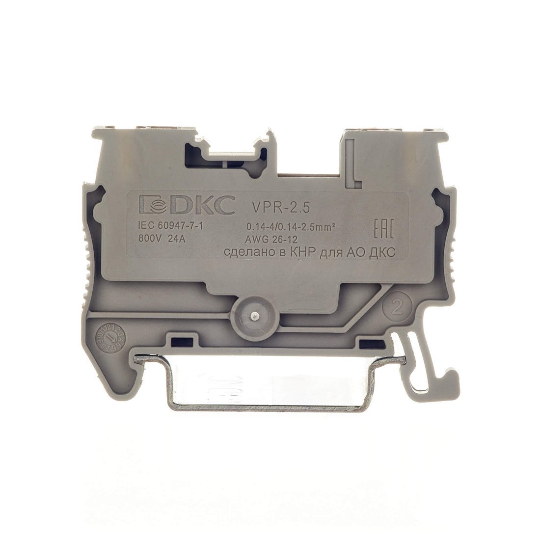 Клемма проходная DKC VPR-2.5-GY 2.5 мм2 Серая Проходная клемма с зажимом Push-in предназначена для соединения двух проводников, а за счет кнопки-толкателя обеспечивается защита от ошибок при монтаже и случайного прикосновения. Монтаж осуществляется на DIN-рейку OMEGA. Температура эксплуатации от -40 до +105оС. Корпус выполнен из ПА 6.6 с классом горючести V0 UL-94. Серый цвет, 2 точки подключения, 2.5 мм². 2 канала для вставных перемычек. Габариты (В×Ш×Г) 36,9×48,7×5,2 мм.