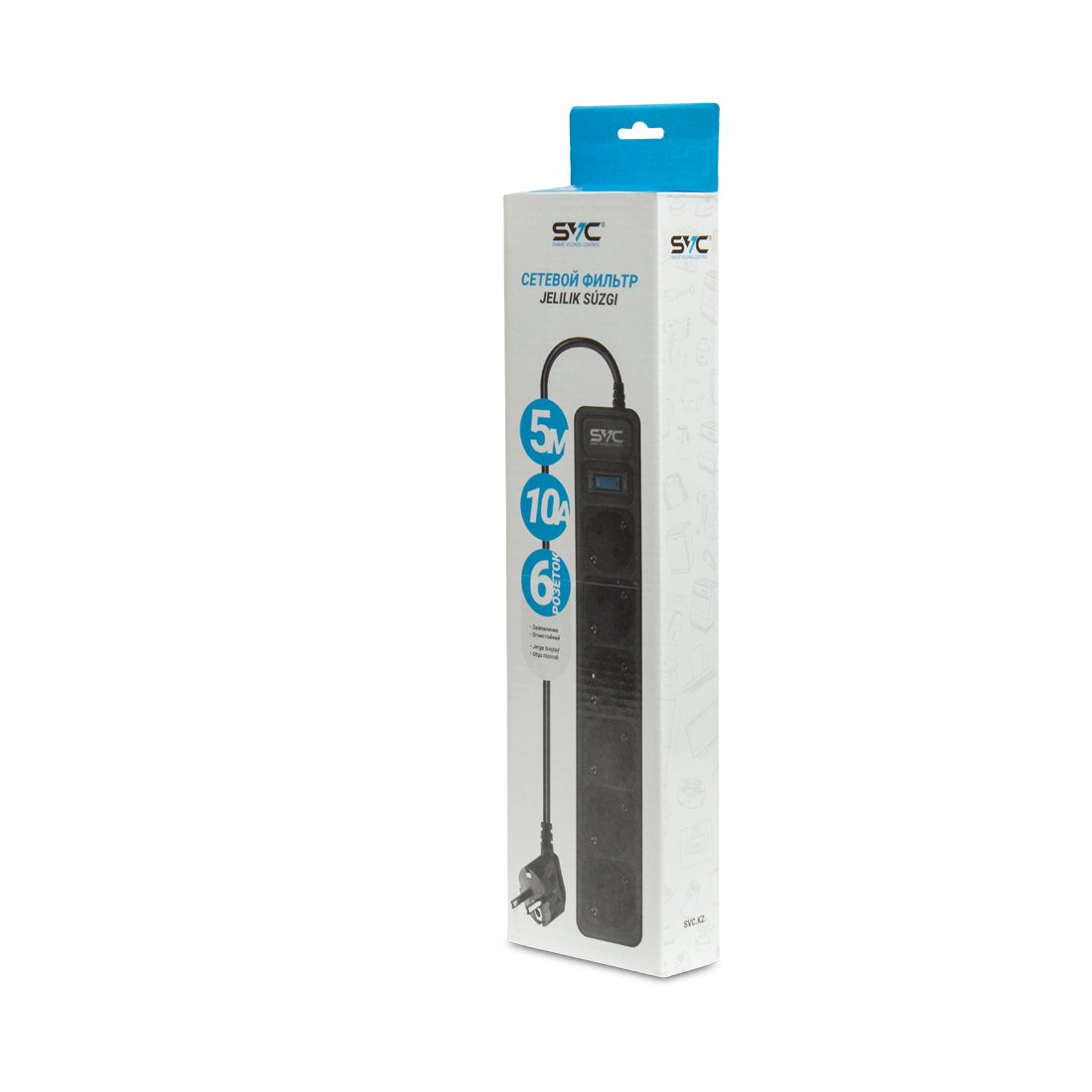 Сетевой фильтр SVC предназначен для подключения электроприборов в местах, удалённых от стационарных розеток. Розеточный блок изготовлен из ударопрочной пластмассы. Защищает электронную технику от перегрузок по току, короткого замыкания, ВЧ и импульсных помех.