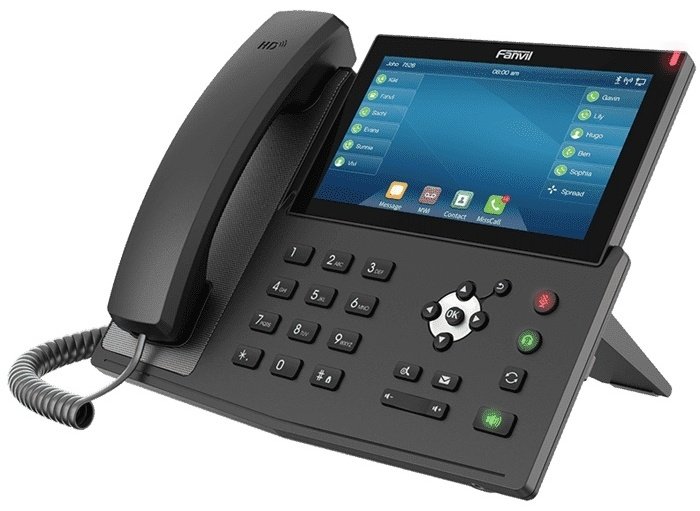 Fanvil X7 — это высококачественный корпоративный IP-телефон, предназначенный для бизнес-пользователей, которым необходим немедленный доступ ко всей важной информации.Он оснащён 7-дюймовым ёмкостным сенсорным экраном, поддерживающим до 127 виртуальных клавиш DSS, что обеспечивает удобный доступ к часто используемым функциям.Телефон поддерживает 20 SIP-линий и HD-аудио с поддержкой кодека Opus, что гарантирует высокое качество звука как при разговоре в трубке, так и при использовании громкой связи.Встроенный Bluetooth и поддержка Wi-Fi (через адаптер) позволяют подключать Bluetooth-гарнитуры и обеспечивают гибкость в размещении устройства.Два гигабитных Ethernet-порта с поддержкой Power over Ethernet (PoE) упрощают установку и подключение.Телефон также поддерживает видеозвонки с использованием кодека H.264, что позволяет интегрировать его с видеодомофонами и IP-камерами.Дополнительные функции включают поддержку EHS-гарнитур, запись разговоров, удалённую и локальную телефонную книгу на 2000 записей, журнал вызовов на 1000 записей, а также различные функции управления вызовами, такие как переадресация, удержание, конференц-связь и другие.Fanvil X7 совместим с популярными платформами, такими как 3CX, Asterisk, Broadsoft, Elastix и Zycoo.Устройство можно устанавливать как на столе, так и на стене, что предоставляет гибкость в размещении.Рабочая температура устройства составляет от 0 до 45°C, а рабочая влажность — от 10 до 95%.