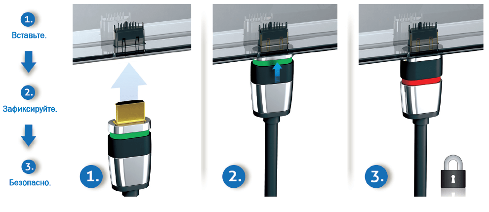 ULS1005 - Кабель HDMI LSZH с системой Ultra-Lock ™ Конечная связь еще лучше - здесь как вариант LSZH (с низким уровнем дыма, нуль-галоген) без галогенов - Полная пропускная способность 18 Гбит / с до 10 метров! Кабель ULS1005 HDMI нашей серии Ultimate с запатентованным защитным замком Ultra-Lock-System ™ удовлетворяет всем требованиям стандарта HDMI 2.0 и с помощью переключателя блокировки на 360 ° обеспечивает легкую в обращении систему безопасности для всех соединений HDMI. Высококачественный, тройной экранированный медный кабель OFC и 24-каратные позолоченные контакты подчеркивают его конечное качество. Разумеется, речь идет о канале возврата звука и кабеле Ethernet (HEAC). Негалогенная обработка обеспечивает низкий уровень дыма при пожарах, что делает его идеальным для внутренних установок. Двойная безопасность: ULS ™ и LSZH Кабели LSZH HDMI серии Ultimate соответствуют всем требованиям стандарта HDMI 2.0 и предлагают с их блокировочным переключателем на 360 ° простую в использовании систему безопасности для всех соединений HDMI. PureLink предлагает кабели Ultimate длиной от 0,5 до 10 метров. Длина 5 м, 7,5 м и 10 м оснащена активным усилителем сигнала с технологией APO ™. Все длины были успешно протестированы для полосы пропускания 18 Гбит / с. LSZH - низкий уровень дыма и отсутствие галогенов Аббревиатура означает «Low-Smoke, Zero-Halogen» и описывает класс монтажных кабелей, которые обеспечивают небольшой дым в случае пожара. Благодаря полному отсутствию галогенов во время производственного процесса, меньше дыма будет автоматически развиваться при пожаре. Кроме того, кабель не горит так быстро, благодаря своим огнезащитным свойствам, что делает его идеальным для установки в зданиях, транспортных средствах и т. Д. Новое поколение Наши кабели Ultimate HDMI соответствуют новому стандарту HDMI - высокоскоростной HDMI 2.0 с Ethernet. Они поддерживают разрешения до 4K (4096x2160) на частоте 60 Гц и полные 18 Гбит / с, а также обратно совместимы со всеми более старыми характеристиками HDMI. Ультра-Lock System ™ Технология ULS ™ специально разработана для бесперебойного и безопасного использования соединений HDMI. Инновационный дизайн надежно закрепляет вилку в розетке и является уникальным на рынке. Защитный замок можно использовать повсеместно с любым гнездом HDMI и легко переключаться между положениями «Запертый» и «Разблокированный» с помощью блокировочного переключателя на 360 °. Тройная защита Наша уникальная трехслойная экранирующая структура состоит из комбинации 100% закрытой алюминиевой фольги, плотной сетки и дополнительной внутренней защиты. Это делает наши кабели невосприимчивыми к помехам и перекрестным помехам. Таким образом, высокочистый внутренний проводник из OFC-меди может полностью развить свой потенциал. Идеальная посадка, долговечность и без потерь Точные и идеально подходящие заглушки с 24-каратным позолоченным контактом гарантируют оптимальную передачу сигнала и долговременную надежную функциональность. Канал канала HDMI и канал возврата аудио Канал Ethernet (HEAC) в кабеле HDMI представляет собой инновацию стандарта HDMI 1.4. Благодаря этому каналу в кабельных IP-развлекательных устройствах, таких как телевизоры, телевизионные приставки или игровые консоли, можно интегрировать в домашнюю сеть, и поэтому Интернет или IP-сервисы могут использоваться без дополнительной проводки. Канал возврата звука (ARC) также сохраняет дополнительный