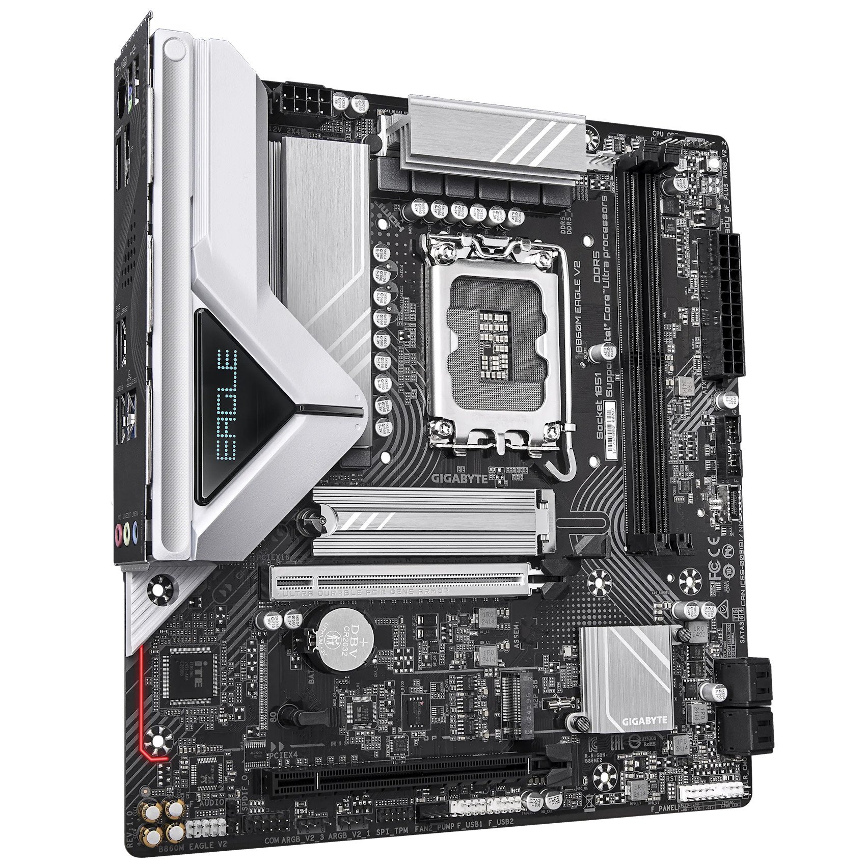 GIGABYTE B860M EAGLE V2 — материнская плата формата mATX на чипсете Intel B860 с сокетом LGA1851. Поддерживает 2 модуля DDR5, слот PCIe 5.0, два M.2 накопителя, видеовыходы HDMI и DisplayPort (DP), а также сетевой контроллер 2.5GbE. Подходит для сборки современных производительных домашних и игровых систем на базе процессоров Intel нового поколения.