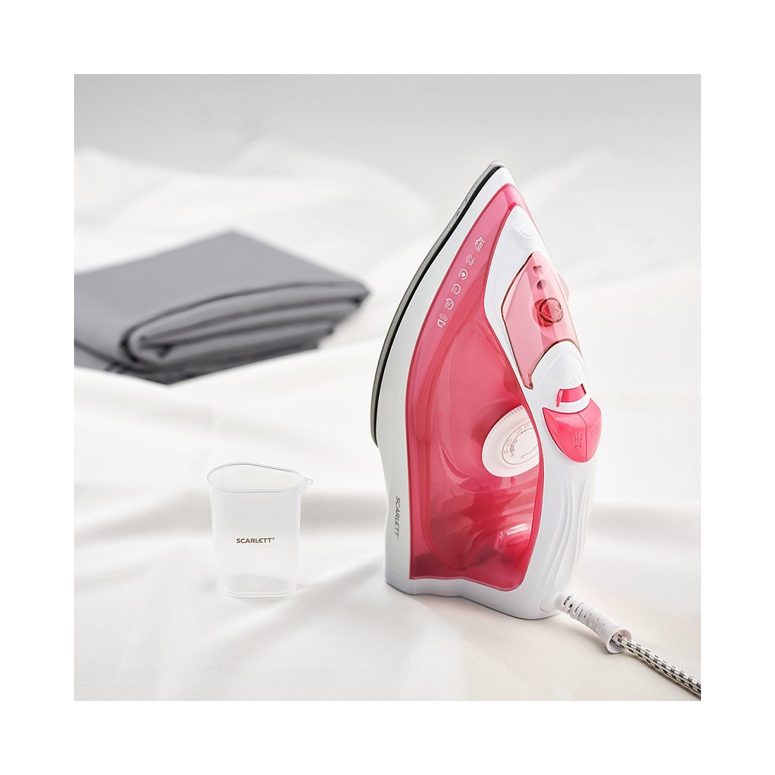 Утюг Scarlett SC-SI30K56 с пластиковым корпусом розового цвета снабжен идеально гладкой подошвой с керамическим покрытием KeramoPro, которая обеспечивает отличное скольжение и бережное отношение ко всем видам тканей. Прибор мощностью 2400 Вт легко скользит по поверхности любой ткани и может эффективно отпаривать вещи, постоянно выдавая до 35 граммов пара в минуту в режиме глажения с паром. В режиме парового удара создает 140 гр пара в минуту, расправляя даже самые непослушные складки. Есть функция вертикального отпаривания: это даёт возможность приводить в порядок пальто или костюмы даже на вешалке. Функция анти-капля позволяет избежать появления случайных капель на одежде. Система защиты от накипи совместно с функцией самоочистки существенно продлит срок службы утюга и убережет его от накипи. Оптимальный вес способствует разглаживанию неровностей без излишней нагрузки на руки. Удобный шнур длиной 180 мм - пластичный, гибкий, оснащен шаровым креплением, защищающим от перекручивания.