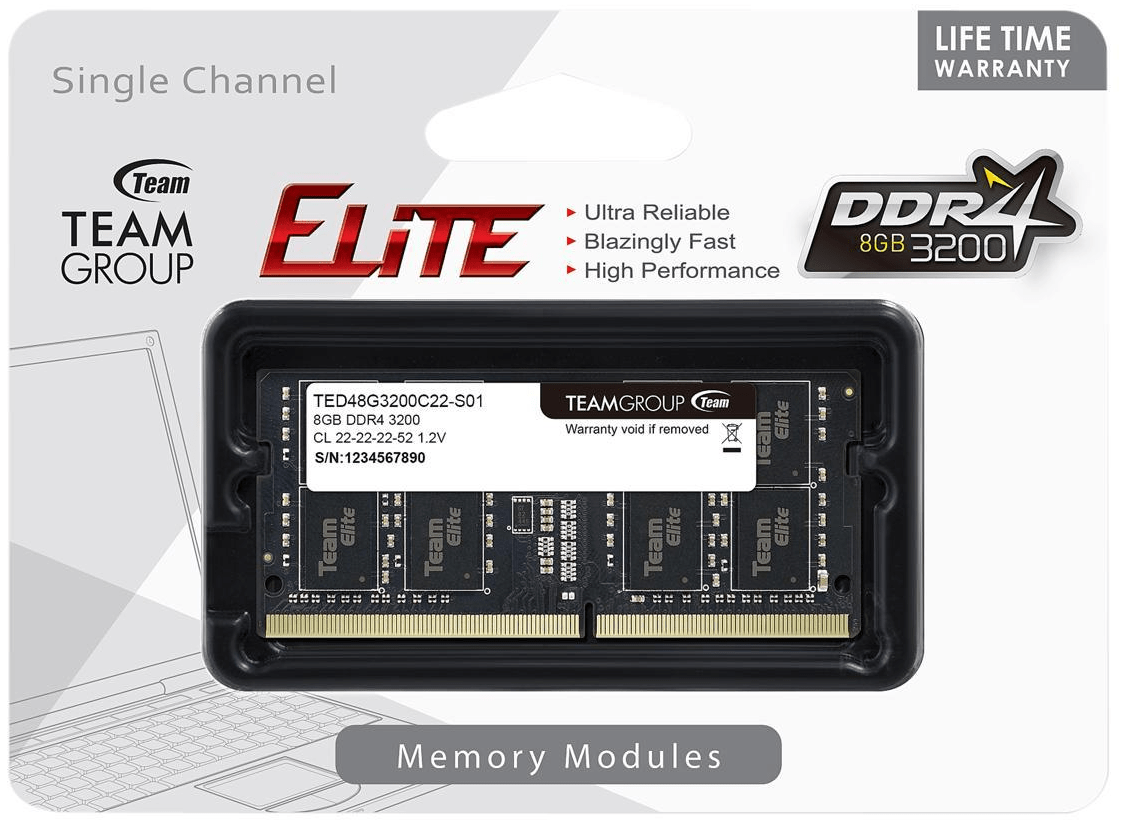 Оперативная память для ноутбука 8GB DDR4 3200Mhz Team Group ELITE SO-DIMM TED48G3200C22-S01