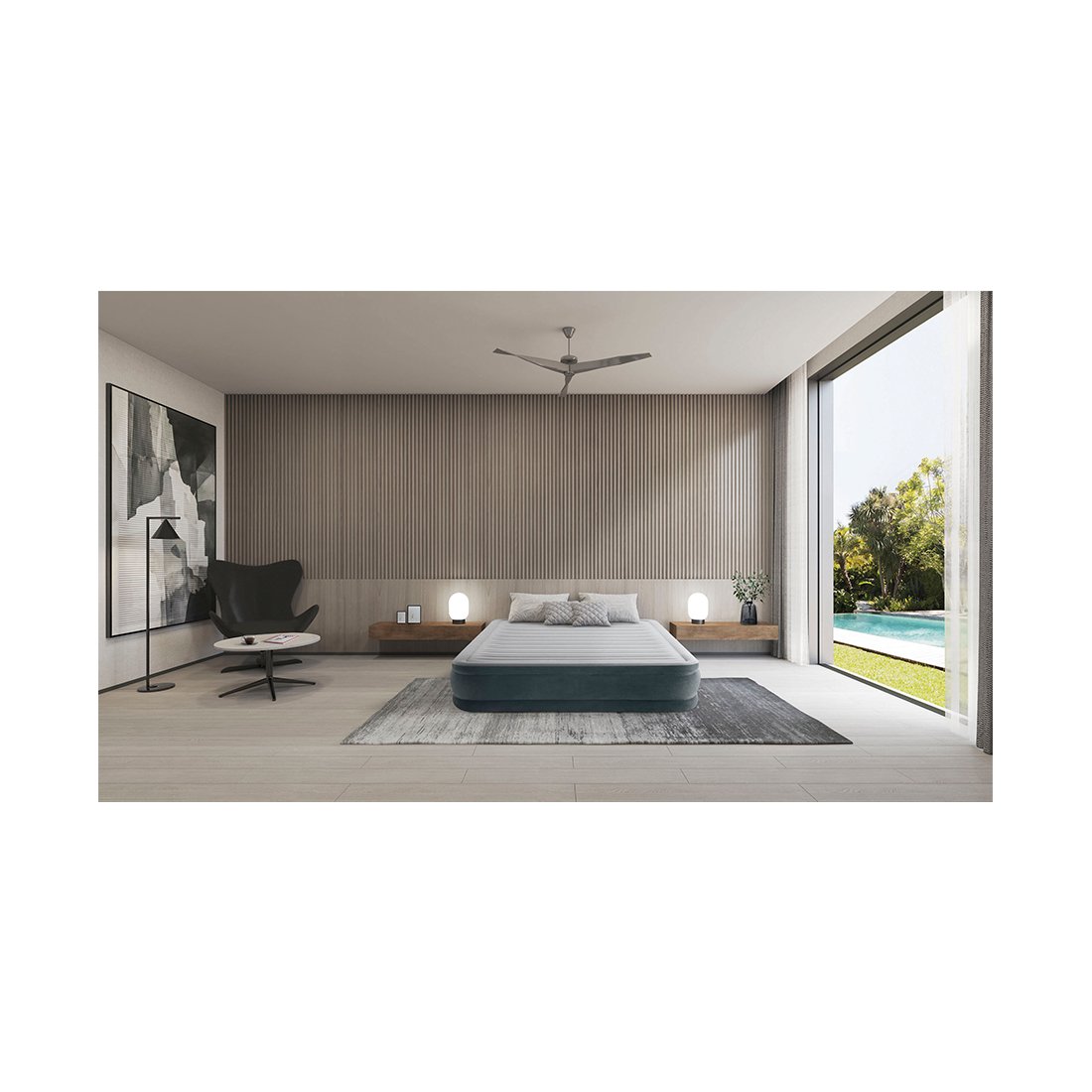 Надувная кровать серии Dura Beam изготовлена по технологии Fiber-Tech. Внутренние перегородки сделаны из множества полиэфирных волокон, за счет чего кровать становится намного прочнее и легче. Благодаря новой технологии практически исключен разрыв внутренних перегородок, кровать стала устойчивой и стабильной даже при одновременном размещении нескольких человек, значительно выросла надежность и долговечность изделия. Флокированное покрытие кровати не даёт соскальзывать белью, и в тоже время легко чистится. Встроенный электронасос позволяет быстро надувать и сдувать кровать и дает возможность отрегулировать ее упругость. При отсутствии электричества, кровать можно накачать механическим насосом. Для этого в центре клапана расположено отверстие для подключения механического насоса. В комплект входит сумка для переноски кровати и самоклеющаяся заплатка. Клапан 2-в-1.
