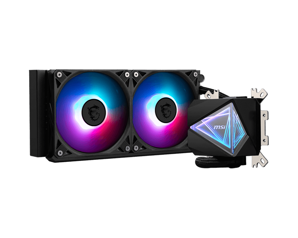 MAG CORELIQUID I240 - двусторонняя бесконечная зеркальная поверхность: демонстрирует особенности продуктов MSI под разными углами, подчеркивая их мастерство изготовления и уникальность. Крышка для кабелей вентилятора: закрывает предустановленные кабели вентилятора, улучшая эстетику и создавая более аккуратную игровую конфигурацию. Подшипник LDB: обеспечивает баланс между сроком службы и уровнем шума, защищает от пыли и адаптируется к различным условиям для стабильной работы вентилятора. Встроенный монтажный кронштейн INTEL и AMD: экологичен, позволяет избежать растраты ресурсов и обеспечивает игрокам простоту обновления оборудования. Простая установка.