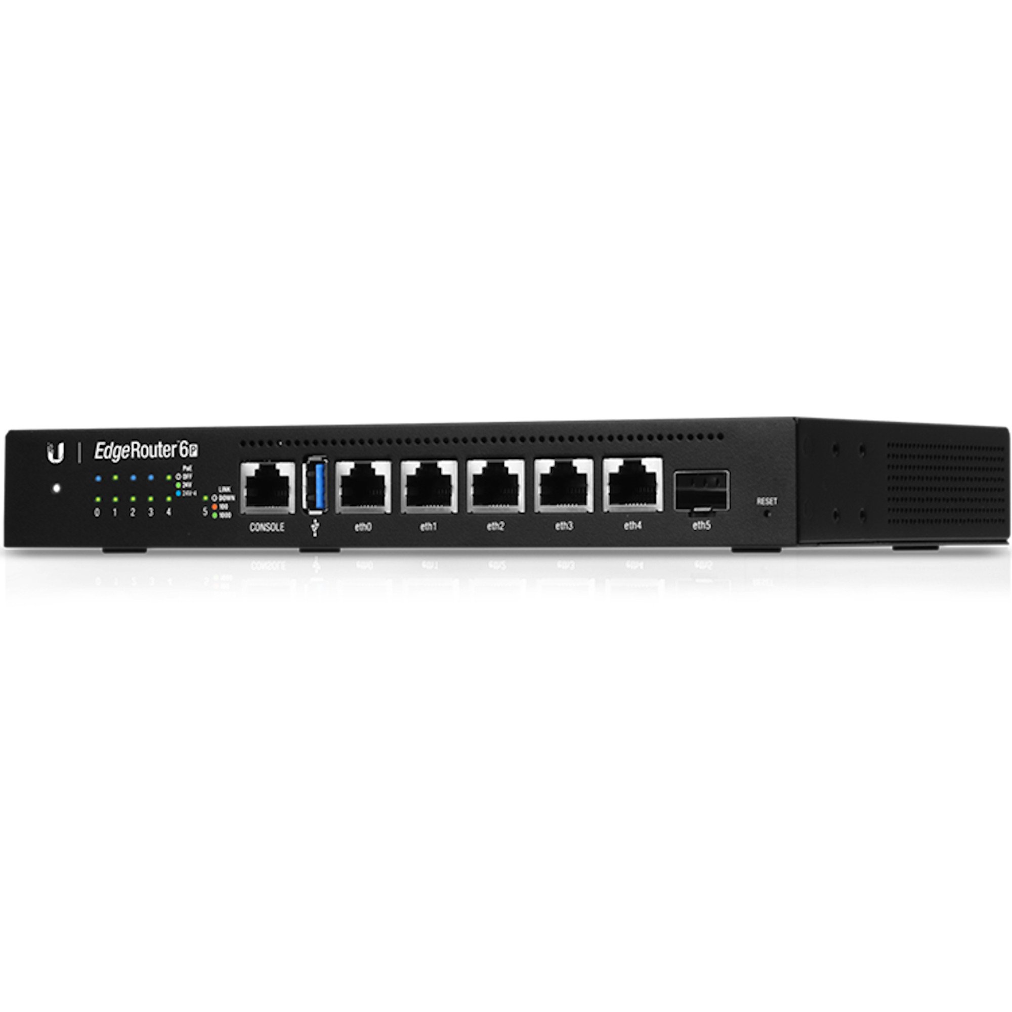 Маршрутизатор Ubiquiti EdgeRouter 6P — высокопроизводительное проводное сетевое устройство с 5 гигабитными LAN‑портами с PoE‑выходом и 1 оптическим SFP‑портом для гибкого подключения медной и оптической сети. Предназначен для управления трафиком в корпоративных, офисных и промышленных сетях и поддерживает мощный набор сетевых функций под управлением EdgeOS.